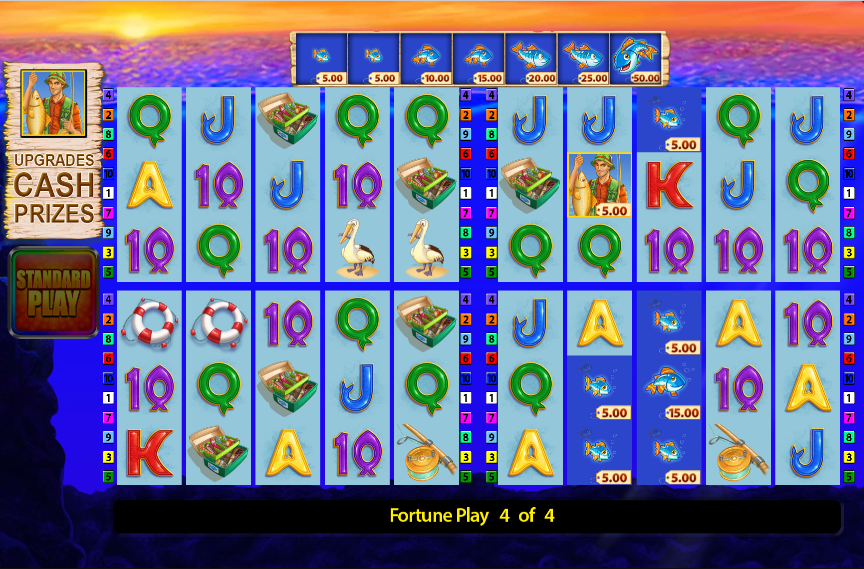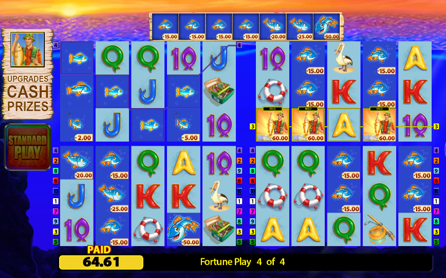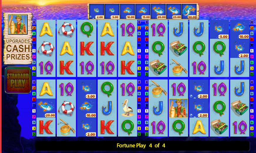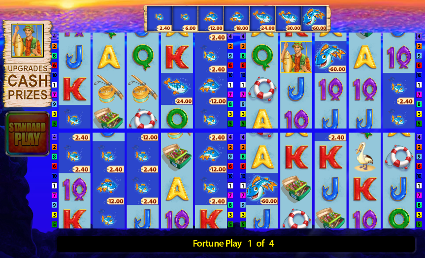 The original Fishin’ Frenzy operates on a simple and familiar model: the fisherman, fish with fixed values, and short bonus impulses. Fortune Play goes further by adding a layer of conscious anticipation. The player is not simply spinning the reels, but moving towards a mode that feels like a distinct event.